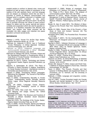 Proverbs And Conflict Management In Africa A Study Of Selected Yorub