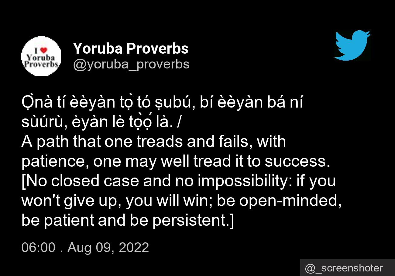 Yoruba Proverbs On Twitter ọ Na Ti Eeyan Tọ To ṣubu Bi Eeyan Ba Ni Suuru Eyan Le Tọ ọ La A Path That One Treads And Fails With Patience One May Well