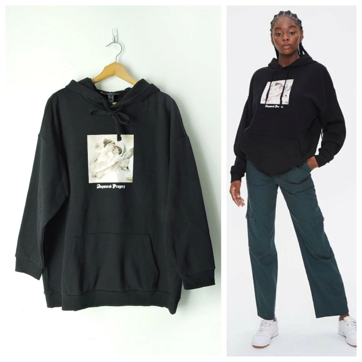 Forewer 21 Answered Prayers Angels Graphic Hoodie Pullover Black 2x Plus Ebay
